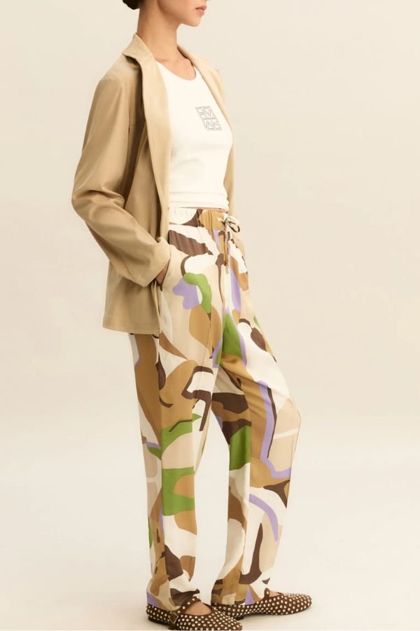 Άνετο, βισκόζ παντελόνι σε στυλ jogger με all-over print, από την εταιρεία Emme.