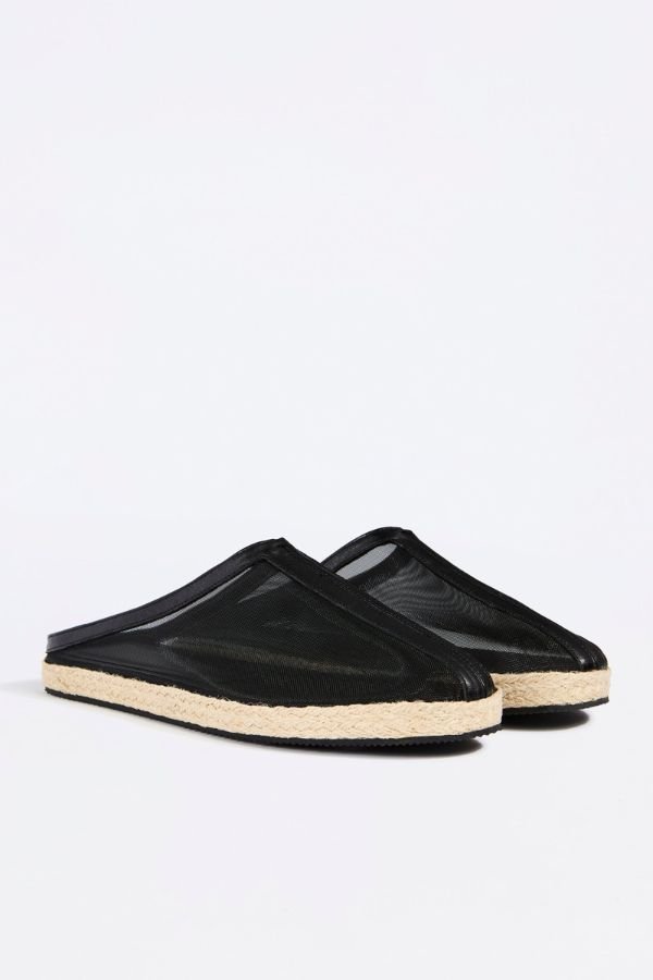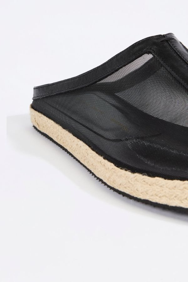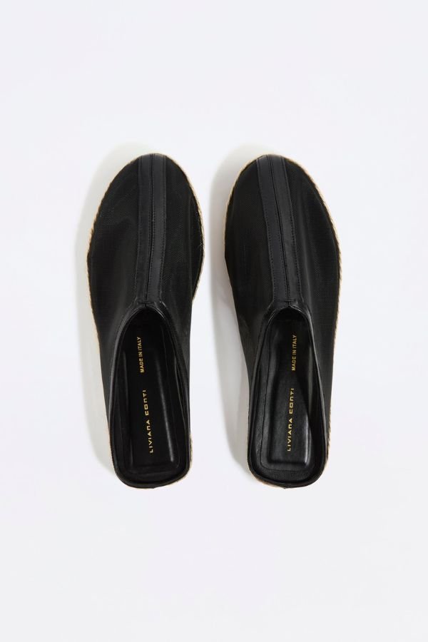Διχτυωτά mules με δερμάτινες λεπτομέρειες και σχοινί στη σόλα, από τη σχεδιάστρια Liviana Conti.