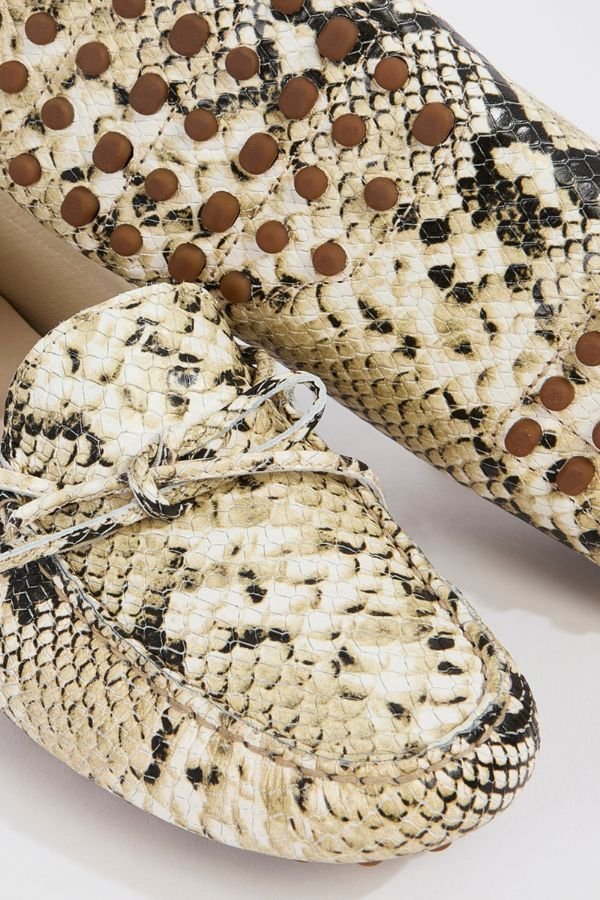 Δερμάτινα μοκασίνια με εφέ φιδιού και αντιολισθητική σόλα από καουτσούκ, από τη σχεδιάστρια Liviana Conti.