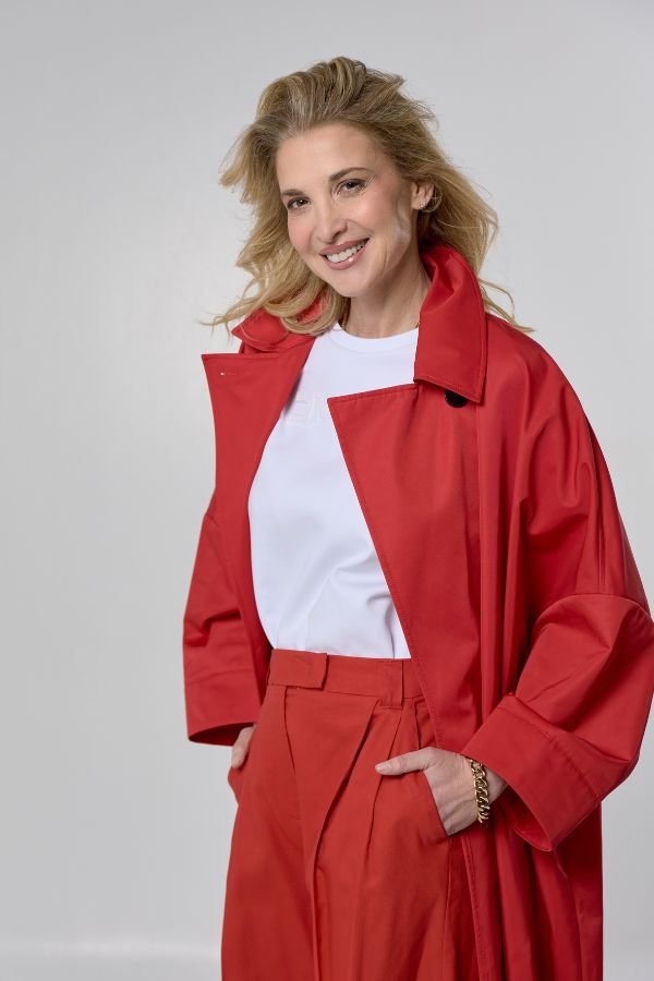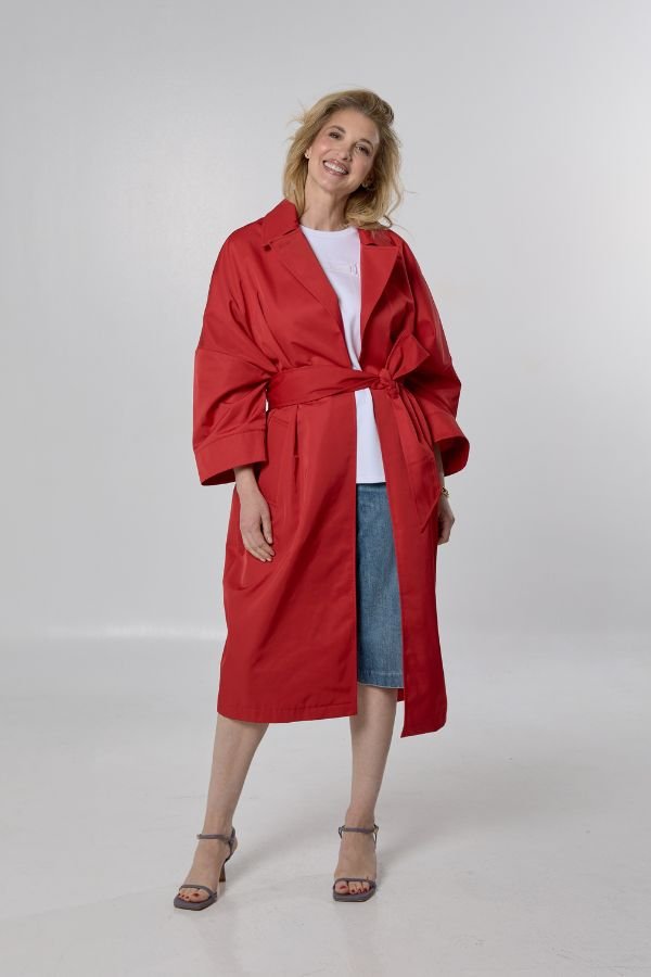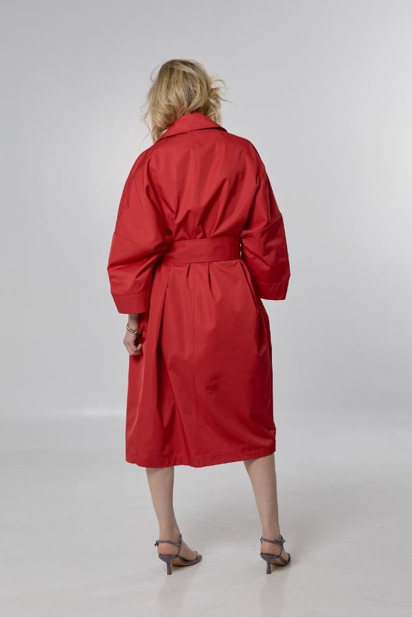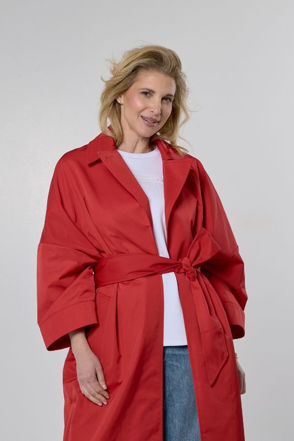 Oversized καπαρντίνα, από την εταιρεία Marella. Κλασικός γιακάς με πέτο και πλαϊνές τσέπες. Κλείσιμο με κουμπί ψηλά στο λαιμό. Ασορτί αφαιρούμενη ζώνη.