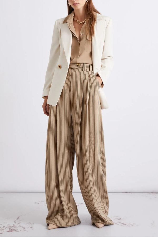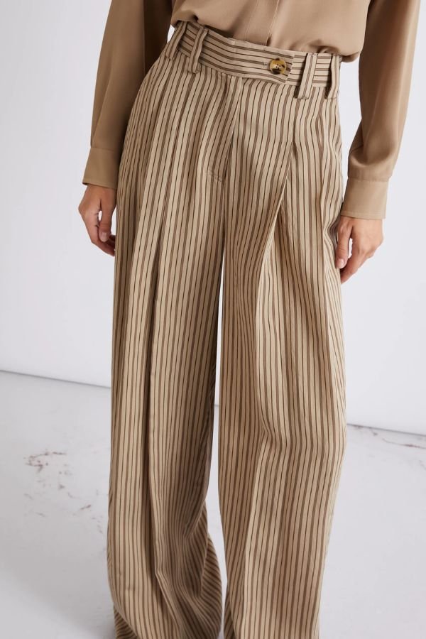 Φαρδύ, ριγέ παντελόνι palazzo, από βισκόζη με απαλή, ανάλαφρη υφή, από την εταιρεία Marella. Πιέτες μπροστά και κλείσιμο με φερμουάρ και κουμπί. Τσέπες στο πλάι και πίσω.