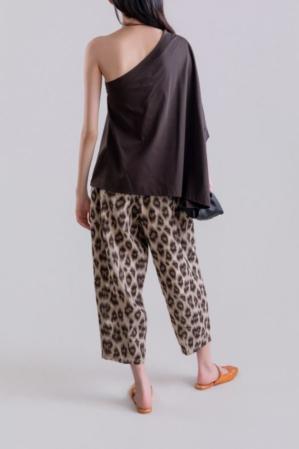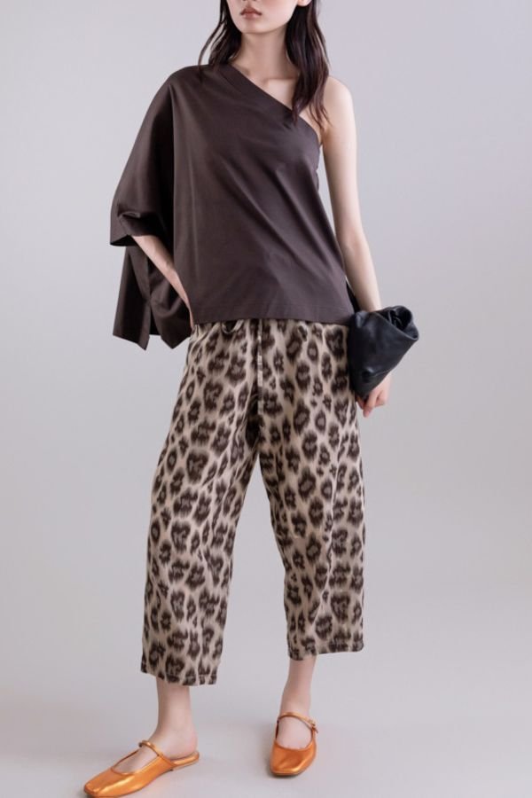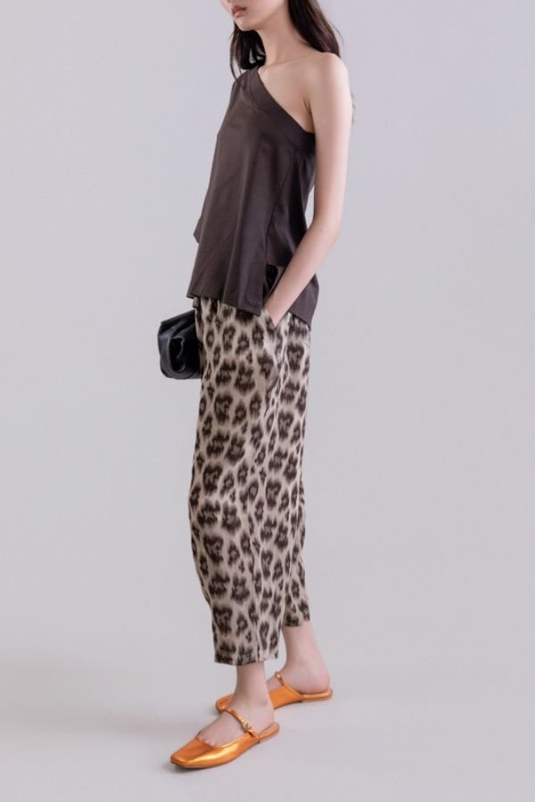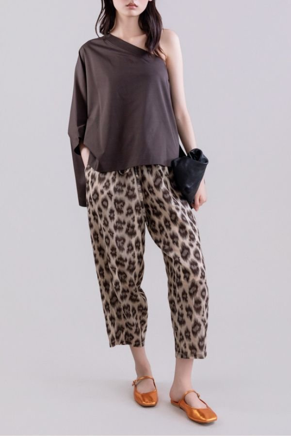 Animal print, slouchy παντελόνι, από λινό, βαμβάκι και μετάξι, από την εταιρία Psophia.